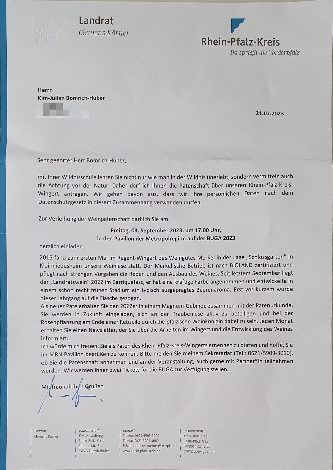 Wahnsinn, was da in unseren Briefkasten geflattert ist... Ein Brief des Landrats des Rhein-Pfalz-Kreises.