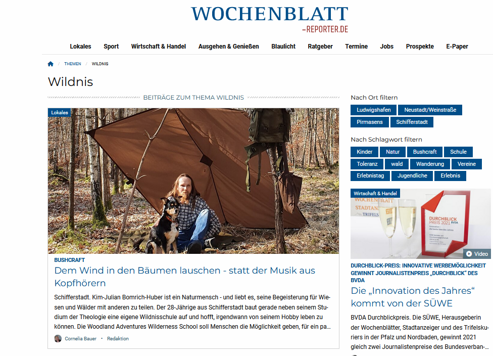 Dieses Mal: Bushcraft. Heimvorteil, oder so.